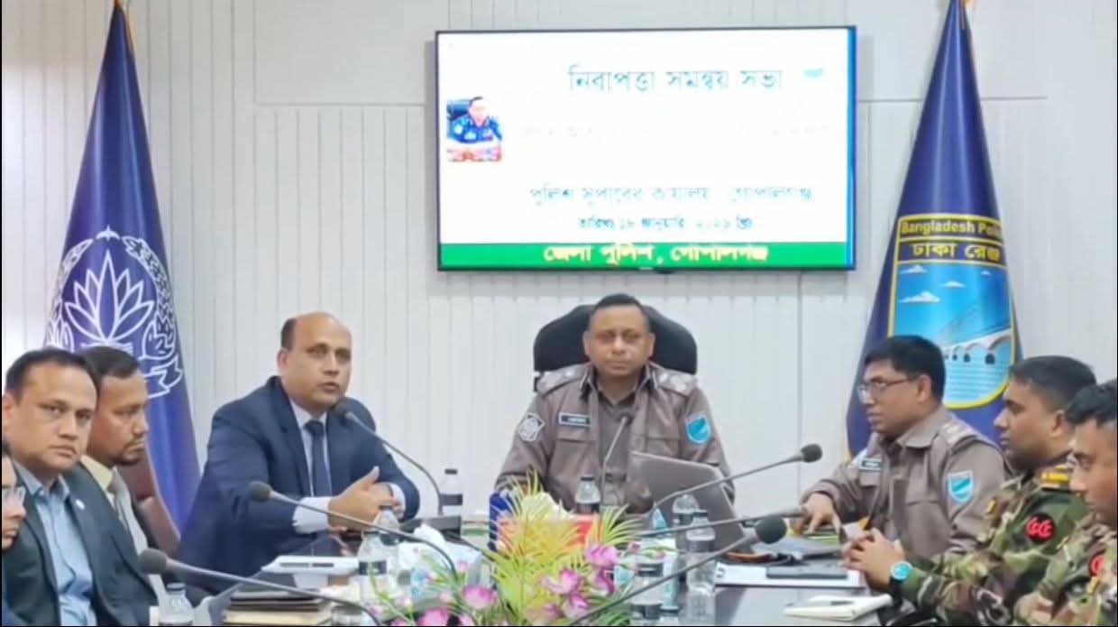 নিরাপত্তা সমন্বয় সভায় গোপালগঞ্জ জেলার বিভিন্ন পর্যায়ের পুলিশ কর্মকর্তা, প্রশাসনের সংশ্লিষ্ট কর্মকর্তা ও আইনশৃঙ্খলা বাহিনীর প্রতিনিধিরা উপস্থিত ছিলেন।
