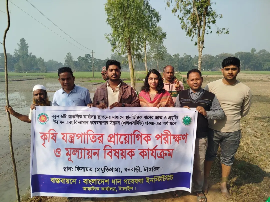 এলএসটিডি প্রকল্পের আওতায় কৃষি যান্ত্রিকীকরণ ও টেকসই উৎপাদন ব্যবস্থার উন্নয়নে অগ্রণী ভূমিকা রাখছে বাংলাদেশ ধান গবেষণা ইনস্টিটিউট (ব্রি), আঞ্চলিক কার্যালয়, টাঙ্গাইল। প্রকল্পের অর্থায়নে টাঙ্গাইলের ধনবাড়ী উপজেলার প্রযুক্তি গ্রাম কিসামতে রাইস ট্রান্সপ্লান্টারের মাধ্যমে ধান রোপণের কার্যক্রম পরিচালনা করা হয়েছে ।১৯ জানুয়ারী সোমবার সকাল থেকে “নতুন ৬টি আঞ্চলিক কার্যালয় স্থাপনের মাধ্যমে স্থানভিত্তিক ধানের জাত ও প্রযুক্তি উদ্ভাবন এবং বিদ্যমান গবেষণাগার উন্নয়ন” (এলএসটিডি) প্রকল্পের আওতায় কৃষিযন্ত্রের প্রায়োগিক পরীক্ষণ ও মূল্যায়ন কার্যক্রমের অংশ হিসেবে কৃষকের জমিতে ব্রি উদ্ভাবিত উচ্চ ফলনশীল জাত ব্রি ধান১০৫-এর চারা যান্ত্রিক পদ্ধতিতে রোপণ শুরু হয় । এ সময় উপস্থিত ছিলেন ব্রি আঞ্চলিক কার্যালয়, টাঙ্গাইল-এর বৈজ্ঞানিক কর্মকর্তা আদিবা আফরিন রিম । তিনি বলেন, ” যান্ত্রিক পদ্ধতিতে চারা রোপণের মাধ্যমে সময় ও শ্রম সাশ্রয়ের পাশাপাশি ফসল নিবিড়তা বৃদ্ধি, উৎপাদনশীলতা উন্নয়ন এবং পানি ও অন্যান্য সম্পদের দক্ষ ব্যবহার নিশ্চিত করা সম্ভব । এর মাধ্যমে ধান উৎপাদনে প্রকল্প এলাকায় ইতিবাচক পরিবর্তন ঘটবে “। এ সময় আরও উপস্থিত ছিলেন মো. আবু হানিফ, সিনিয়র মেকানিক, ব্রি-গাজীপুর; কার্যক্রমে অংশগ্রহণকারী কৃষকবৃন্দ এবং ব্রি আঞ্চলিক কার্যালয়, টাঙ্গাইল-এর বৈজ্ঞানিক সহকারী মো. আনিসুর রহমানসহ অন্যান্য কর্মকর্তা-কর্মচারী, ধনবাড়ী উপজেলা মডেল প্রেসক্লাবের সাধারণ সম্পাদক মোহাম্মদ ইমাম হাসান (সোহান) সহ প্রিন্ট ও ইলেকট্রনিক মিডিয়ার সাংবাদিকবৃন্দ । মো. আবু হানিফ রাইস ট্রান্সপ্লান্টার ব্যবহারের প্রযুক্তিগত সুবিধা, শ্রম ও ব্যয় সাশ্রয় এবং সমান দূরত্বে চারা রোপণের ফলে ফলন বৃদ্ধির বিভিন্ন দিক তুলে ধরেন । ব্রি’র এই কার্যক্রম প্রত্যক্ষ করে গ্রামের অন্যান্য কৃষকরাও যান্ত্রিক পদ্ধতিতে ধান চাষে আগ্রহ প্রকাশ করেন। প্রকল্পের আওতায় রোপণকৃত জমির জন্য ব্রি উদ্ভাবিত উচ্চ ফলনশীল বীজ, সার, কীটনাশক ও সাইনবোর্ড বিনামূল্যে সরবরাহ করা হয়েছে । পাশাপাশি প্রযুক্তি গ্রাম কিসামতে আরও ১০৫ (একশত পাঁচ) বিঘা জমিতে উচ্চ ফলনশীল ধানের জাতের প্রায়োগিক পরীক্ষণ ও মূল্যায়নের লক্ষ্যে বিনামূল্যে বীজ, সার, কীটনাশক ও সাইনবোর্ড বিতরণসহ মাটির উর্বরতা ও